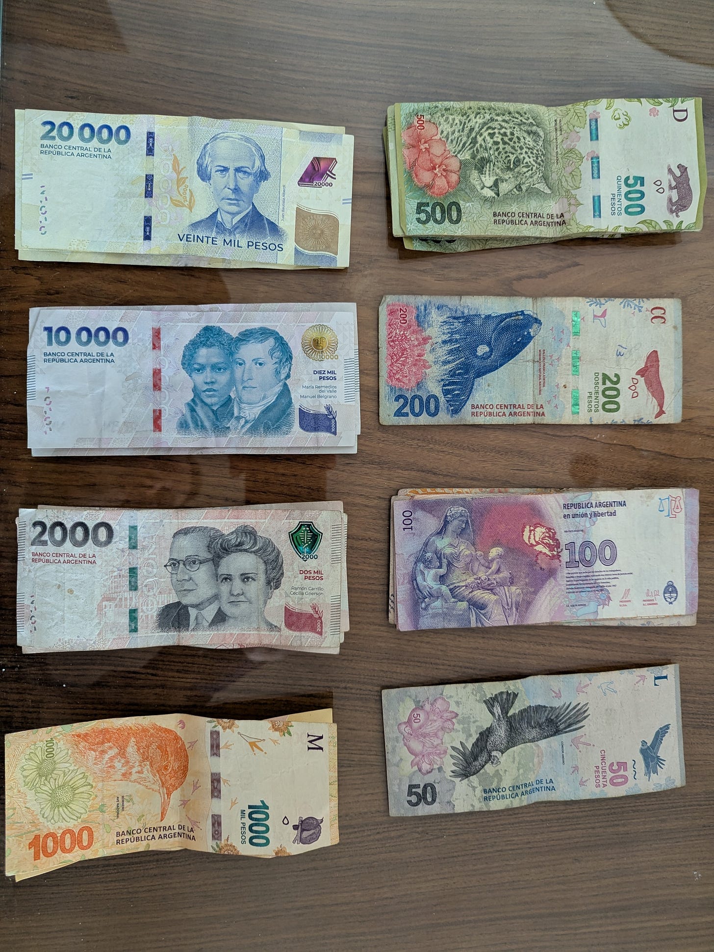 L’inflation a frappé dur à Buenos Aires. Ça paraît. Certains produits sont vraiment chers : Des chips à 8$ CAD, les fromages à 15$, le poulet à 22$, le café et le pain en général sont plus cher qu’à Montréal et les quantités sont petites.